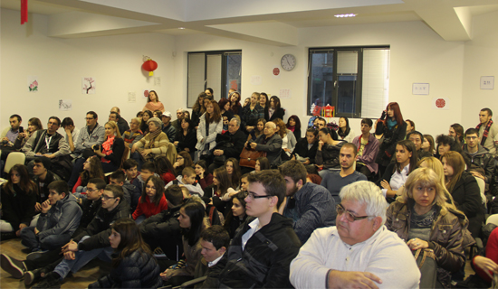 接下来在普罗夫迪夫大学礼堂进行历史和文化宣传活动,面对现场500多观众,索非亚大学孔院的刘明老师转达了孔院领导和教师对当地第一个孔子课堂成立的祝贺,并鼓励大家在学汉语的同时,加深对中国文化的了解。