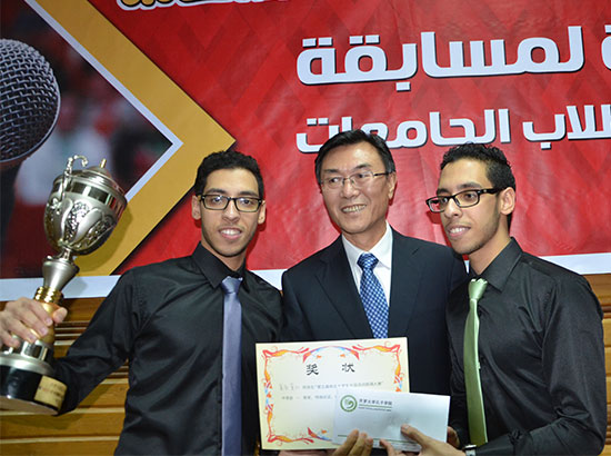 比赛中,参赛选手除进行中国诗词的介绍、赏析和朗诵表演外,还需完成四道有关中国诗词的问答题。最终经过激烈角逐,来自艾因夏姆斯大学的莫南、莫北双胞胎兄弟用顾城的《我是一个任性的孩子》获得一等奖。比赛结束后,开罗大学中文系和孔子学院全体教师为现场观众表演了齐声诗朗诵《水调歌头·重上井冈山》和《沁园春·雪》,为本次大赛划上圆满的句号。