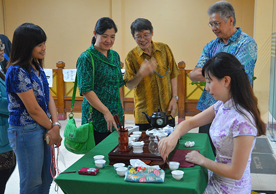 12月4日下午,印尼阿拉扎大学孔子学院在UNS大学学术交流厅举办中华文化展示活动,为师生带来中国茶艺、中国书法、中国结以及中国剪纸等体验项目。