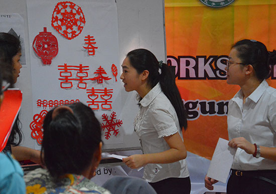 UNS大学文学与艺术学院学生Arima激动地说,她已经学习汉语三年了,但今天是她第一次接触中国结,第一次喝中国老师泡制的中国茶,第一次尝试用毛笔写自己的中文名字,第一次剪出漂亮的窗花。她希望将来能够有机会去中国学习更多中国文化。