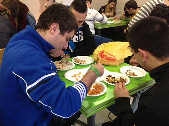 上午,鲁塞大学师生在竹园餐厅举行“舌尖上的中国”厨艺大赛,学生5人一组,在中国大厨和老师的指导下,制作出扬州炒饭、宫保鸡丁、鱼香肉丝等中国传统美食。