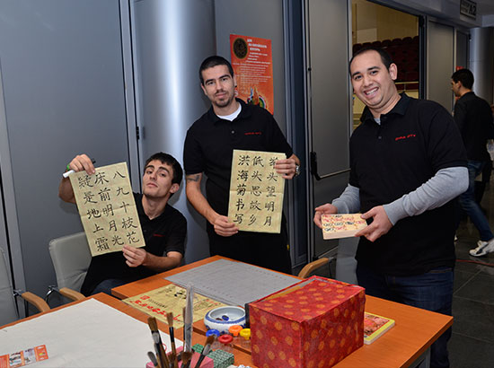 鲁塞大学活动展区展出了中国风景画、剪纸、书法作品和汉语学生活动照片等,孔子学院志愿者教师现场表演舞龙、茶艺、剪纸和中国结制作,吸引众多参与者观看。汉语师生把手工编织的中国结和剪纸作品现场义卖,作为鲁塞市残疾儿童的募捐善款。