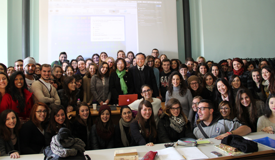 12月11日上午9点,受罗马大学孔子学院邀请,宁夏大学中文系古代文学教授唐骥及其妻子——中国社会科学院意大利研究中心罗红波主任,在罗马大学孔子学院总部举行了题为《唐诗中的爱情,亲情和友情》的讲座。罗马大学中国古代文学专业的学生聆听了这次精彩纷呈的讲座。