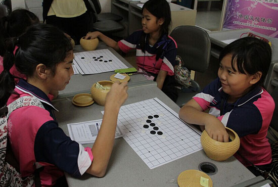 随后,孔子学院教师向介绍并示范了“五子棋”的规则,引起学生极大的兴趣。整场体验课,学生们沉浸于黑白子的世界中,欢声笑语不断。