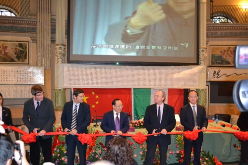11月25日,由罗马大学孔子学院、欧洲中国书法家协会等联合举办的欧洲华侨华人第五届书画展,在罗马维多利奥“水宫”举行。中国驻意大利大使丁伟、意大利政府部分政要,罗马大学副校长、罗马孔院外方院长马西尼,中方院长朱勇等共两百多人出席了开幕活动。