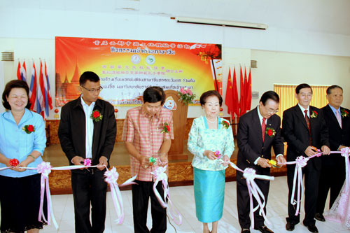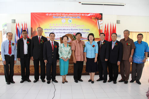 泰国教育部民教委汉语项目主任赖芝华、泰国华文民校协会主席梁冰、夜功府教育局局长格努、泰国西部地区华文民校联谊会主席黄迨光、曼松德.昭帕亚皇家师范大学孔子学院院长梁德仲等出席了文化体验营开营仪式并为开营仪式剪彩。