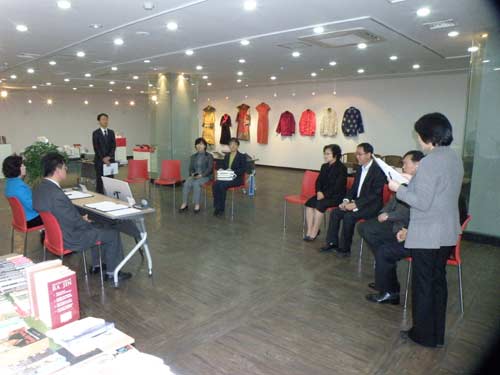 上午十时许,启明大学校长助理、孔子学院院长赵寿星(Cho Soo Sung)教授、中方院长刘谦功教授、中国中心科长韩明希(Han Myung Hee)老师、项目负责人金东河(Kim Dong Ha)老师、工作人员金东炫(Kim Dong Hyun)老师一行五人来到大邱西部图书馆,参加中国图书展览开展仪式,受到西部图书馆馆长及相关工作人员的热烈欢迎。