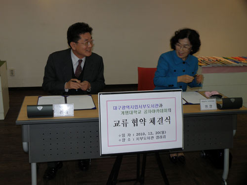 2010年12月20日,启明大学孔子学院与大邱西部图书馆联合举办了中国图书展览,并于开展仪式上签署了合作协议。