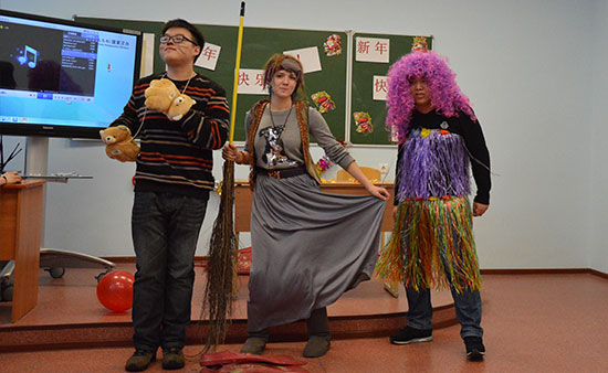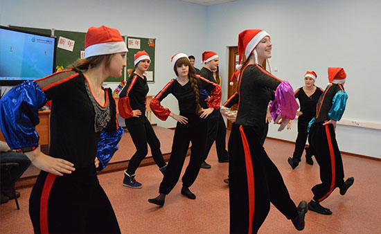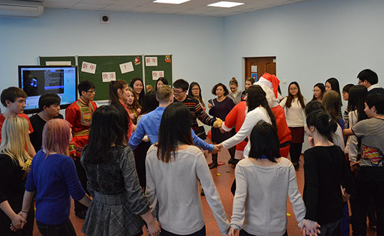 12月26日,阿穆尔国立人文师范大学孔子学院举办“激情奔向2015”中俄大学生新年联欢活动。阿穆尔国立人文师范大学中文系、外语系师生,中国留学生,孔子学院师生以及校合唱团学生欢聚一堂,共同迎接2015年的到来。