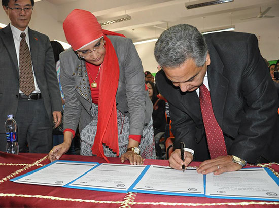 孔子学院外方院长李哈布同埃中友好示范学校校长伊塞姆签订教学点合作合同