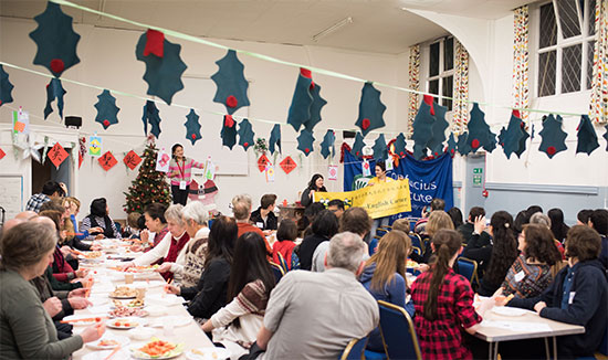 12月9日,由谢菲尔德大学孔子学院“汉英角”团队主办的中华圣诞晚会拉开序幕,汉英角成员、东亚系学生、孔子学院成人部学员以及孔子课堂成人部学员参加该活动。