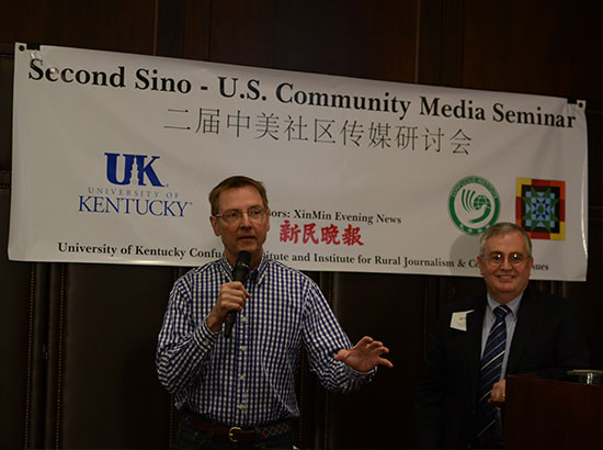 两天时间里,与会专家和学者就中美社区传媒及社区报各个层面的问题展开激烈讨论。中方代表还应邀访问了肯塔基大学,参观了肯塔基州当地两家社区媒体,与美国当地新闻媒体从业人员进行了友好的交流和互动。