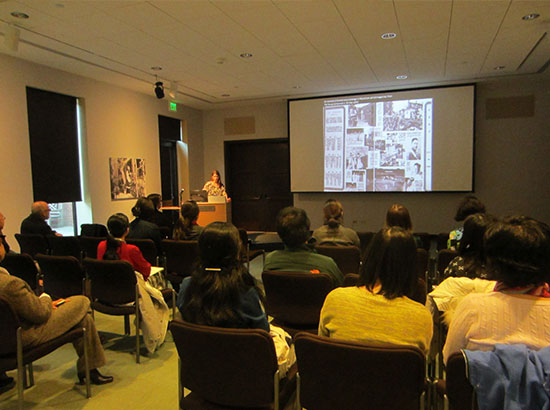 讲座伊始,俄勒冈大学孔子学院院长康怡若(Ina Asim)致辞。Wright教授在讲座中对比整理了民国时期《良友》、《北洋画报》、《妇女杂志》等多种刊物在推介男艺术家、女艺术家时所采取的不同策略,从而指出,民国时期第一批留洋女艺术家归国后,引领了现代职业女性的新风尚,使女性跨出闺门,获得了一定程度上的经济独立,提升了女性的社会地位。但从刊物对女艺术家的推介方式来看,社会更关注女艺术家的个人形象、家庭背景、性格魅力等方面,艺术家作品的艺术性本身则缺少话语权。讲座结束后,听众纷纷就各自感兴趣的话题与演讲嘉宾进行深入探讨。