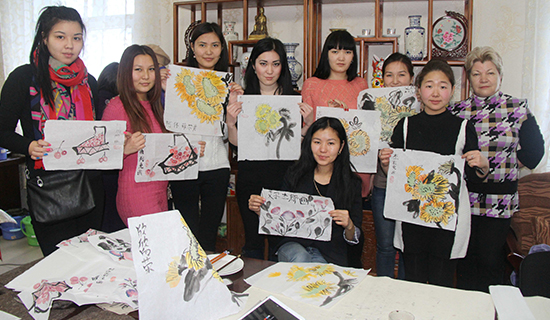 此次文化活动兴趣速成班从1月8日持续至1月16日,开设了中国茶艺、书法、国画、舞蹈、歌曲速成班,此外还安排了中国音乐和中亚的关系、中国医学简述、孔子、春节等专题讲座。结业典礼上,各班学生纷纷上台献艺。