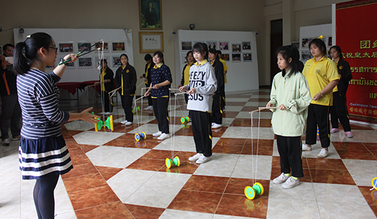 太极教师王苇教授了24式简化太极拳的基本招式,充分调动了学生的积极性;空竹教师邢聪睿现场进行了技艺展演,学生们热情高涨,认真学习抖空竹的基本动作。