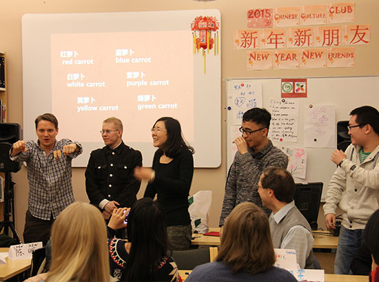 此次活动主题为“新年,新朋友”,旨在为学习汉语的芬兰学生和在芬留学的中国学生搭建一座桥梁,增加相互了解。活动共分为五部分:自我介绍、寻找共同点、知识抢答、“萝卜蹲”游戏和自由谈话结成语伴,其中寻找共同点活动最受欢迎。