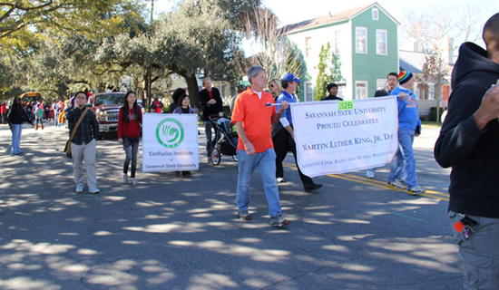 1月19日,美国萨凡纳州立大学孔子学院的教师及该校师生代表队一同与当地民众相聚在萨凡纳市中心,参加“马丁路德金日”庆祝活动。每年一月第3个星期一是美国假日“马丁路德金日”,美国各地都以不同的方式举行纪念和庆祝活动。