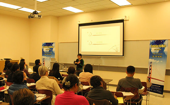 1月18日,旧金山州立大学孔子学院中文教学工作坊正式开讲,北京师范大学汉语文化学院教授程龙和胡秀梅受邀担任此次讲座的主讲人,来自旧金山湾区40多位中文教师及有志于中文教学的研究生、本科生参加该活动。