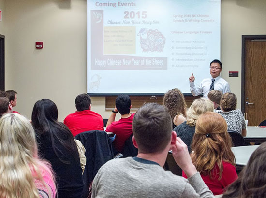 1月21晚,美国北卡罗莱纳州立大学孔子学院迎新年系列活动拉开帷幕,孔子学院教师唐晓忠和两名学生受邀做了“中国新年和中国文化”主题讲座,共吸引北卡州大30余名学生参加。
