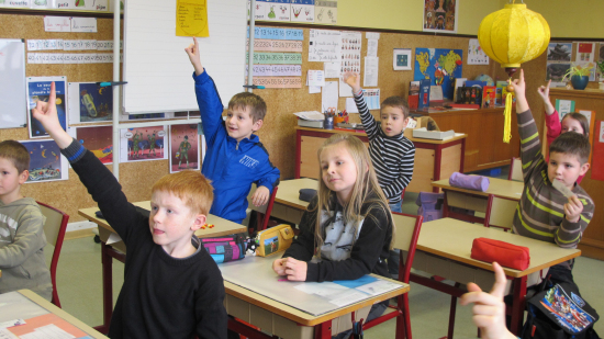 维萨布尔小学校长兼班主任沃兹妮(Wozny)是阿尔萨斯孔子学院的中文学员,孩子们听说“老师的老师”来了,纷纷用刚学会的“你好 ! ”欢迎她们。