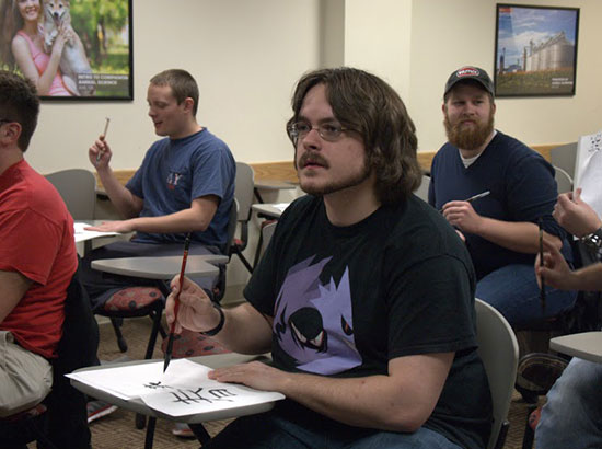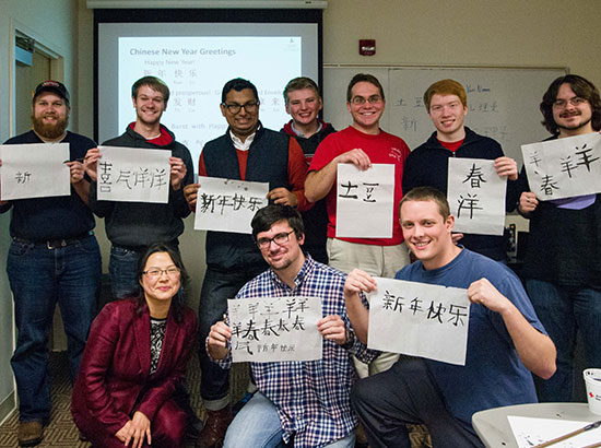 1月23日晚,应北卡罗来纳州立大学兄弟会的邀请,北卡罗来纳州立大学孔子学院教师杨阳和一名学生举办了“书法迎羊年”活动。