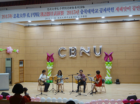 1月23日晚,韩国忠北大学孔子学院2015迎新春系列活动之“汉语节目表演赛”在多功能厅落下帷幕。