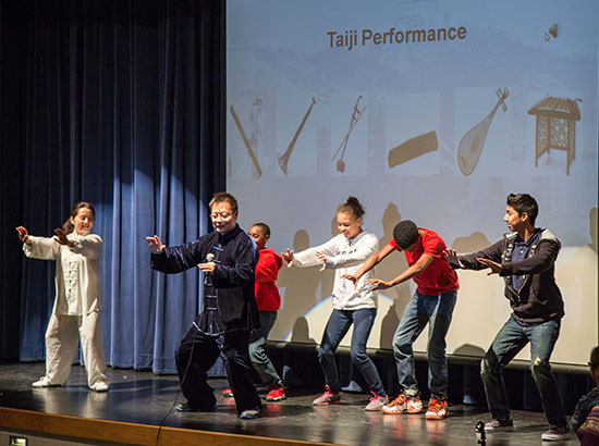 孔子学院教师杨阳现场表演了民乐赏析节目,一曲曲中国经典民乐,让在场学生觉得新奇不已,渴望了解乐曲背后的中国乐器。在传统乐器竞猜活动中,高难度的考题如辨别《高山流水》的古筝版和琵琶版,以及《茉莉花》的笛子、二胡和扬琴三个版本,激发了学生的斗志。
