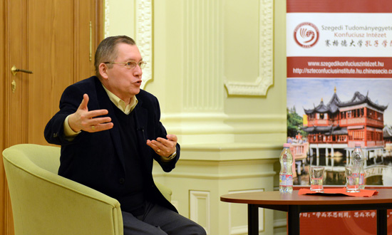 1月27日,匈牙利前驻华大使库邵伊•山道尔做客赛格德大学“孔院茶馆”,以“中国梦—中国的未来”为题发表了演讲,并与学生、教师和赛格德市民品茗交流。本次活动由赛格德大学孔子学院外方院长李察德主持,近百位当地市民参加。