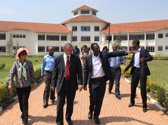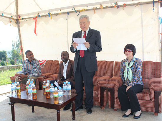 1月28日上午,中国驻卢旺达大使馆大使沈永祥及夫人陈英芸访问卢旺达东部省中卢友谊中学(GATSIBO COMMUNITY MODEL SCHOOL)以及乌姆塔拉科技大学(UMUTARA POLYTECHNIC COLLEGE),向其捐赠一批由中国驻卢旺达大使馆提供的中文书籍和电子设备,并为学校图书馆“汉语角”揭幕。