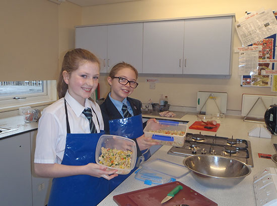 学生们按照老师的指示,洗、切、调味准备好了的食材,然后一步步炒好鸡蛋、黄瓜、胡萝卜、鸡肉,乘盘,装盘。随后,他们满足的品尝着自己亲手做的美食,许多同学带了饭盒,把自己做的炒饭带回家给家人分享。