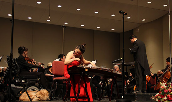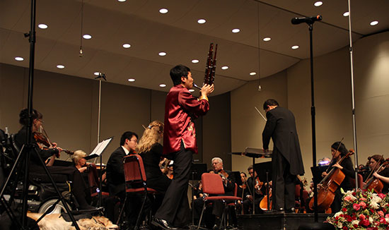 首先,钱德勒市交响乐团为听众演奏了被誉为“圆舞曲之王”小约翰施特劳斯的《蓝色多瑙河圆舞曲》。随后,孔子学院民乐教师夏菁表演了富有浓郁民族特色的古筝曲《彝族舞曲》,陈博首次在交响乐队的伴奏下演奏了传统笙曲目《秦王破阵乐》,马茂洵与交响乐队合作表演《除夕》,三首经典名曲将晚会推向高潮。