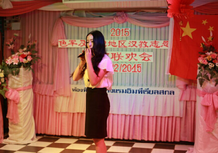 在乌汶府的联欢活动中,管理教师陈艳艳转达了国家汉办驻泰事务代表孙玲博士的亲切问候和新年祝福,在联欢中,相声《满腹经纶》、歌曲《你被写在我的歌声里》、舞蹈《傣家女》等由志愿者表演的精彩节目轮番上演,为大家营造了欢乐喜庆的中国年。