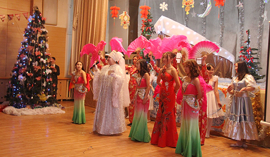 汇演正式开始后,第二中学的学生们表演了合唱和舞蹈节目,还别出心裁地用俄语、吉语和汉语为大家演了一场小型音乐剧,将童话里的圣诞老人、雪姑娘、大灰狼等角色都搬到舞台上,为即将到来的中国春节送上最真诚的祝福,令人眼前一亮。