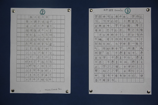 学生们的作品包括孔子语录,古诗,和基本笔画。评委们在认真观看了每份作品后,分别从文字规范性、整体美观、点画基本功、结字造型等四个方面对作品进行打分。最后,来自达大孔院的一年级学生高杰获得了此次比赛的一等奖,五名选手分别获得二、三等奖。