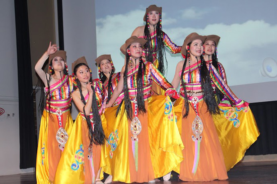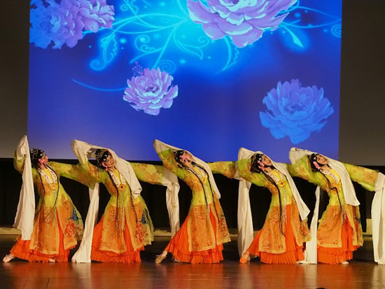 接下来,不同风格形式的舞蹈纷纷登台。《溜溜的康定、溜溜的情》表达了雪域高原藏家儿女的热情奔放和对美好爱情的憧憬;独舞《草原的姑娘》仿佛将观众带进了辽阔美丽的大草原;现代舞《花样年华》,不仅让观众欣赏到舞者婀娜多姿、摇曳曼妙的舞姿,更领略了中国传统服饰——旗袍的魅力,举手投足之间,将东方女性的温婉柔美展现得淋漓尽致。古典舞剧《粉墨》片段 “白蛇传”,则别出心裁地将东西方古典舞与现代舞两种不同风格的舞蹈融合在一起,在传统与创新中将观众带入了古老东方那缠绵悱恻的爱情故事中;古典舞《咏荷》,宛如一幅淡雅清幽的水墨画,在舞台上娓娓展开,舞者的一举一动尽显荷花的孤芳高洁;《月狐》的表演者,模仿三只在皎洁的月光下翩然起舞的灵狐,惟妙惟肖的动作,将灵狐妩媚轻灵的神韵完美展现。由余吉娜带来的艺术体操表演,劲爆火辣,动感十足,那高难度的动作、超柔韧的肢体、强烈的韵律感,无不展示着青春的活力与激情,博得了观众热烈的掌声和欢呼,掀起了晚会的一股高潮。