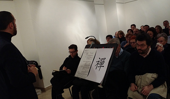 活动开始后,当地著名诗人、文学家Renzo Cremona先生对禅宗的一番解释和介绍深深地吸引了到场的听众。随后,Renzo,Sandra和意籍华人June声情并茂的中意语朗诵把现场听众带入一种游离尘世之外的境界。当朗诵到“草庵盘结长松下,面面轩窗尽豁开,目对青山终日坐,更无一事上心来”的时候,现场听众更是为其静如枯木,心无所系的氛围所打动。