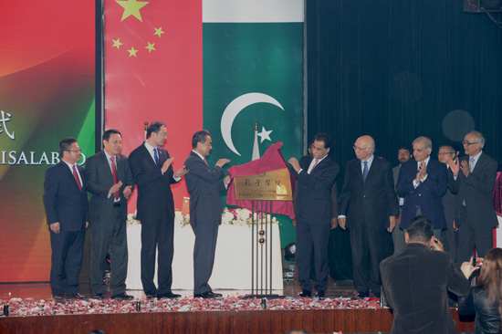 2015年2月12日,巴基斯坦费萨拉巴德农业大学孔子学院在伊斯兰堡巴中友谊中心的2015中巴友好交流年启动仪式上举行揭牌仪式。中国外交部长王毅和巴基斯坦国民议会议长萨迪克先生共同为孔子学院揭牌。