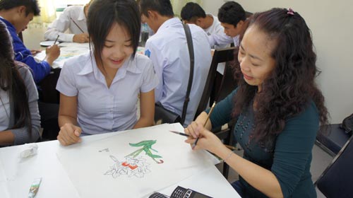 11月27日,孔子学院开展了为期一周的中国国画教学。课上,老师讲解了毛笔、墨汁、宣纸等的用法,耐心地教授打底、勾线、调色以及渲染的技巧。教学课让老挝学员们首次领会到来自中国的国画之美,在老师的指点下,画出自己第一幅中国画,更让学员们信心倍增。
