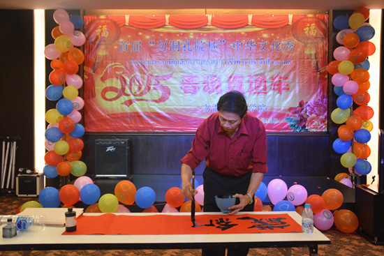 2月10日,长达5个小时的首届“勿洞孔院杯”中华文化秀暨春晚直通车大型春晚节目选拔活动在勿洞市文华大酒店举行。勿洞市市长容志江、慈善堂主席陈富祥、八桂堂理事长张振传、广西会馆理事长凌东生、勿洞孔院理事拿督周昌江、江延凯、李丽云等嘉宾,以及来自皇家也拉师范大学、威拉叻巴叁中学、中华学校以及班百洞的师生们出席了本次活动,现场嘉宾、评委、表演者和亲友团等共计200余人参加了活动。