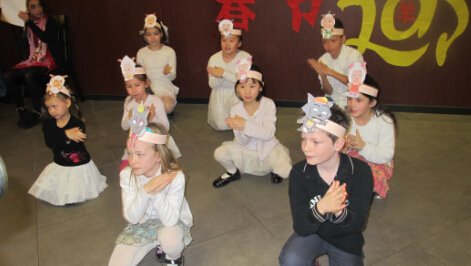 2月10日,孔院教师们前去斯堡市中心一家圣母教会幼儿园 (Ecole Notre-Dame de Sion) 举办了一场小型春节联欢会,幼儿园的一百多名孩子们还特意为此做了羊年头饰。十二生肖、太极拳表演都给孩子们留下了深刻的印象。最后,幼儿园孩子和教师们穿着中国服装走秀。