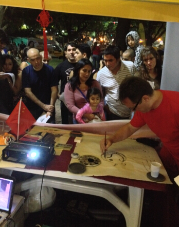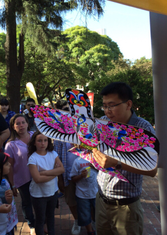 布宜诺斯艾利斯大学孔子学院的教师向参观的游客介绍了中国传统艺术、中国工艺美术及中国民俗等内容。很多游客对展示的京剧脸谱产生了浓厚的兴趣,孔子学院教师从京剧的起源、主要表演形式及不同颜色脸谱所代表的人物性格等方面进行了讲解;来参观的小朋友们则对中国传统的燕子风筝爱不释手,纷纷合影留念;文化课教师还现场为公众表演了如何画中国画。