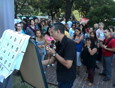 在介绍中国传统文化的同时,还进行了简单的汉语公开课,由布宜诺斯艾利斯大学孔子学院中国籍教师向来访游客教授中国节日问候语,阿根廷籍本土教师讲解汉语与西班牙语发音的差异。针对很多游客提出的如何进行中文课和文化课报名, 如何参加汉语水平考试及各项文化活动等问题,老师们都进行了一一解答。布宜诺斯艾利斯大学孔子学院还向来访的游客赠送了带有中国画风格图案及汉西双语祝福词的宣传卡。
