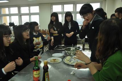 12月3日,我院全体教师来到全罗中学家政室,为选修中文放学后课程的30余名初中生开展了包水饺体验活动。老师们从调陷、和面、擀皮一直到包水饺手把手的教,学生们饶有兴趣的学。活动现场气氛非常热烈,有的学生甚至恶作剧的专门带来芥末偷偷加到陷里,谁吃到了就引起教室里一阵欢笑。品尝着自己亲手包的各式各样的水饺,学生们对中国文化又有了更深的了解。