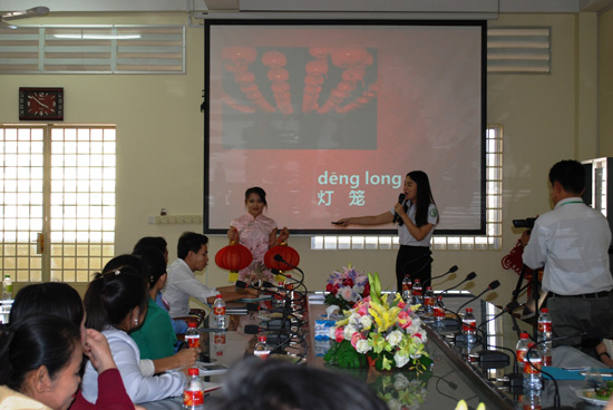 孔子学院汉语教师志愿者范婷作了“中国传统节日—春节”为主题的讲座。她以图片和实物展示中国春节的元素,让学生识记这些春节元素。随后又讲解了中国春节的来历、传说,春节前和春节后的风俗习惯等。特别是在生动形象的讲解中国关于“年”的传说和关于“祟”的传说时,学员们都十分感兴趣,不时发出赞叹声。范婷还教给大家新年祝福语,带领学员们一起朗读,给学员们送去新年的祝福。最后,在展示春节文化元素抢答环节,很多学员都可以抢答出关于春节的文化元素,范婷老师也送上了精心准备的春节小礼品。