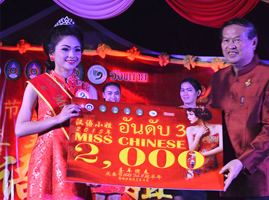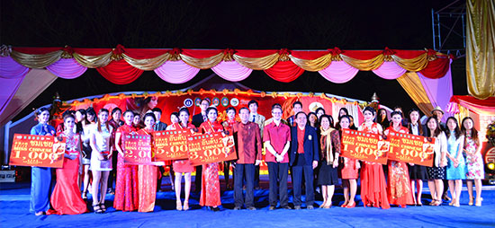 2月12日晚,泰国玛哈沙拉坎大学孔子学院与玛哈沙拉坎皇家大学、乌汶皇家大学、黎逸皇家大学以及四色菊皇家大学联合举办第三届“汉语小姐选美大赛”,共九位佳丽参加。中国驻孔敬领事馆总领事李名刚、玛哈沙拉坎大学孔子学院中方院长林浩业、孔敬大学孔子学院中方院长王贵彬、玛哈沙拉坎府前府尹朗三、玛哈沙拉坎皇家大学校长颂猜·翁嘎喜以及各学院院长等出席活动。