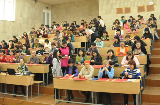 首先,由比什凯克人文大学孔子学院新任院长廖冬梅致欢迎辞,奥通巴娃基金会第一执行官肯迪勒巴耶娃•多歌杜古丽、人文大学校长穆萨耶夫•阿不都达发表讲话,赞扬中国剪纸是一门很有意思的民间艺术。本培训班旨在培训一批掌握基本剪纸技巧的中小学老师,可将陶冶情操的剪纸艺术在吉尔吉斯斯坦中小学广泛推广开来,培养孩子的动手能力及审美情趣,当地学生们能够通过剪纸更多地了解中国。