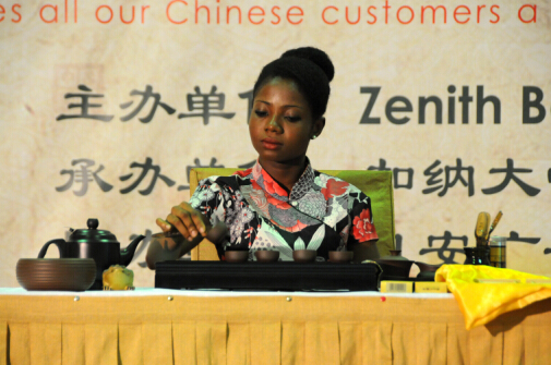 当地时间2015年2月14日,由Zenith Bank主办、加纳大学孔子学院承办、日安广告公司协办的“中国茶文化节”在加纳首都阿克拉GS Plaza举行。中国驻加纳特命全权大使孙保红女士以及加纳各界政商代表、中资企业代表出席了本次活动。
