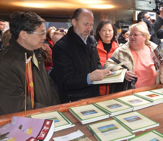 温振顺大使、特拉亚诺夫斯基市长、邹书玲副主任(从左至右)在展演会场