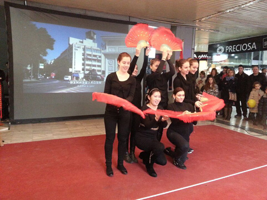 马其顿当地时间2月14日中午,圣基里尔•麦托迪大学孔子学院与中国驻马使馆、斯科普里市政府、南昌市政府代表团、马中友好协会、驻马中资机构等单位在斯科普里广场GTC购物中心一层联合举行新春文化展演活动。由孔子学院展演的茶艺、书法、歌舞和太极,以及南昌市代表团的歌舞和民间手工艺表演、中资企业宣传和各种纪念品发放,内容丰富,精彩纷呈,吸引了当地民众1000余人参加。 中国驻马其顿大使温振顺、南昌市人大常委会副主任邹书玲、斯科普里市长特拉亚诺夫斯基、市议长米舍瓦也参加了此次为时三小时的主题活动。