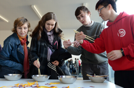 此次迎春文化活动以何敏老师的一曲匈牙利民歌《春风》拉开序幕。来自布达佩斯的华人书法家张伟先生为匈牙利民众表演了中国书法。随后,学书法、踢毽子、中国风光图片和影像展、做饺子、体验中国传统婚姻服饰、学习用筷子、学说中国话等活动全面铺开,各摊位前人头攒动。作为受邀贵宾,匈牙利匈中友好协会的武术队为观众表演了集体太极拳套式和中国剑术等精彩节目。